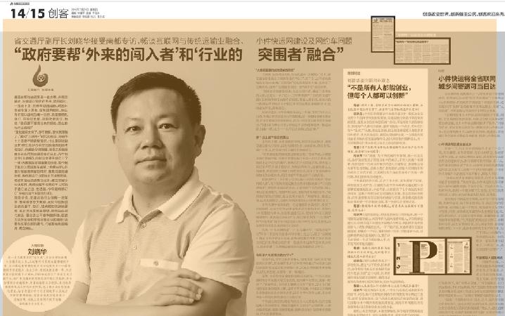 省交通厅副厅长刘晓华接受南都专访,畅谈互联网与传统运输业融合、小件快运网建设及网约车问题