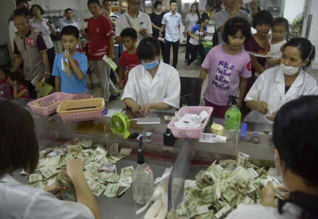 点钞员向市民们展示了他们的日常工作。点钞员大多是戴着白口罩,身着蓝长褂,脚穿凉拖鞋的女性员工。她们先将装满钱钞先倒在桌上,然后用水壶喷一下水--这是为了保护手指不被割伤,同时让纸币理起来更 “ 顺 ”。接着,她们便熟练地将纸币分类、捋平、扎捆,几分钟就快速搞定一沓整齐厚实的一元纸币。而硬币则经过分类后统一交由称重人员,按照每个 1 元硬币为 59.5 克的标准重量,通过电子秤快速计算出金额。