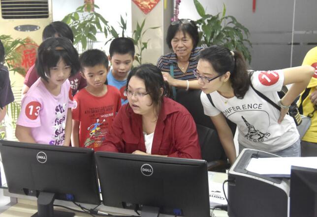 在二汽公司罗冲围总站,20个家庭参观了广州最大的客车维修厂、广州市公交行业中最大的二汽点钞中心及智能调度中心。