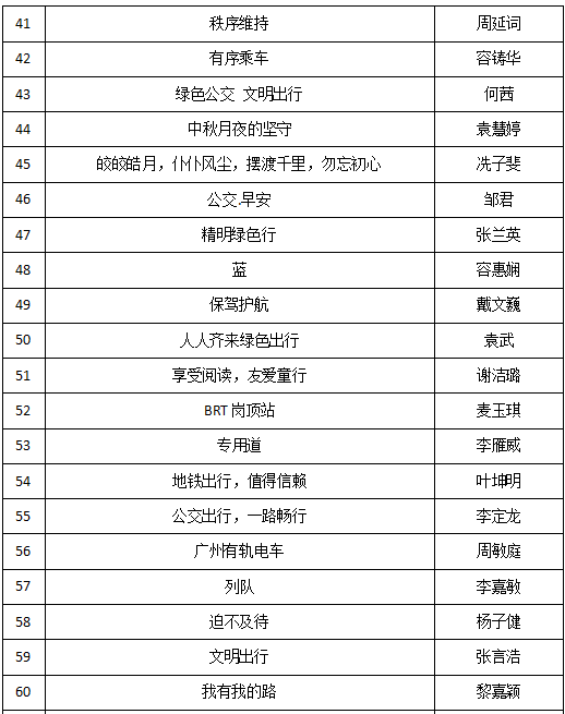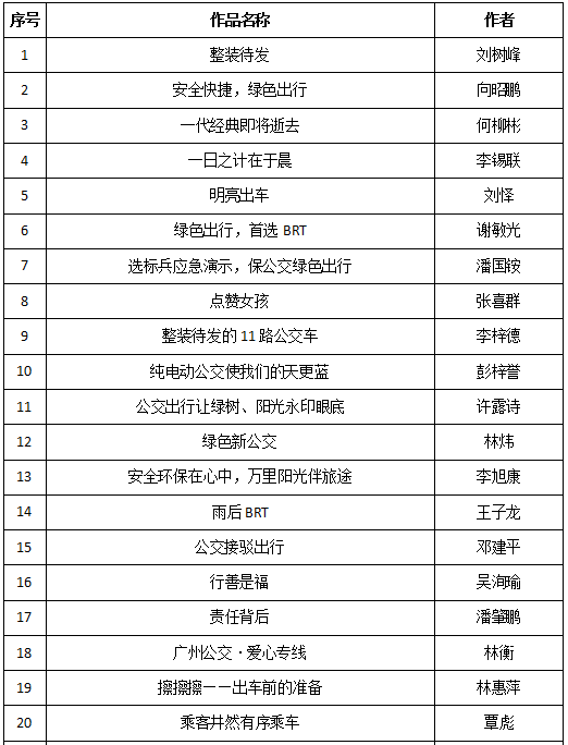 由广东省交通运输厅指导,广东省道路运输管理局、广东省城市公共交通协会共同主办,广东岭南通股份有限公司协办的广东省“优选公交 绿色出行”手机摄影大赛自8月30日启动以来,获得了公众朋友们的热烈响应。大赛共征集作品280多幅,内容充分反映了全省公交出行中和谐、文明、友善等内容。经专家评审和公众投票,最终决定出本次大赛的特等奖、一等奖、二等奖、三等奖和优秀奖。现予以公示,公示时间为10月1日-10日。公示期间,如有疑问,可联系省城市公共交通协会。联系人:李先生,020-37637909-8008。