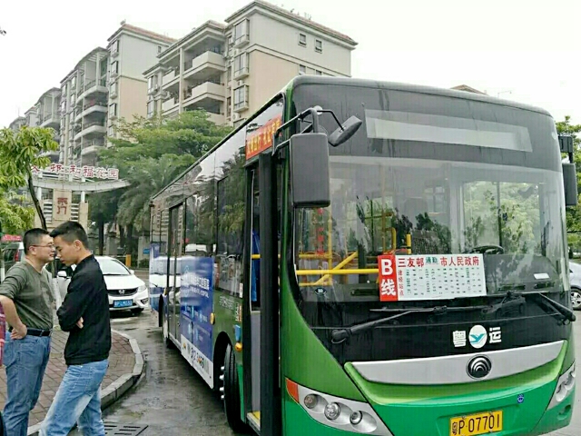 三友邨花园—市政府,途经三友邨·和福花园(东门)、大同北路(中英文学校)、教师新村(广百百货)、市自来水公司、文明路口、沿江路、茶山公园、市政府等站