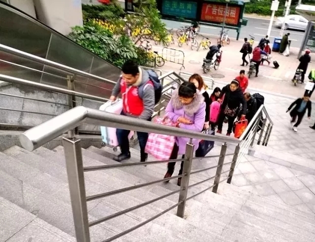 这样的对话无时无刻不发生在深圳东站公交站台正后方的22步阶梯之下,东部公交的义工队从上月30日开始就在各个火车站、公交站开始进行旅客疏导活动,而东站这22步阶梯又是通往火车站的必经之路,提着大包小包急着赶火车的旅客看到了义工们红色背心上的东部公交Logo之后终于舒了一口气,在义工们的帮助下,轻松到达火车站开启了快乐的回家路!