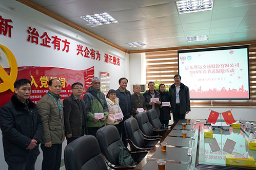 2月6日,广东粤运交通董事长、省城公共交通协会会长禤宗民到韶关粤运开展2018年春节“送温暖”活动,与韶关粤运所属单位老党员、困难党员和困难职工5名代表亲切座谈,并代表公司为他们发放了春节慰问金。