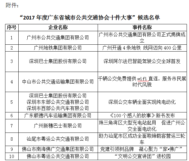 附件:2017年度广东省城市公共交通协会十件大事”候选名单。