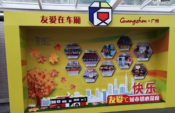 本次巡展即对广州的“友爱在车厢”文化的一次集中展示。笔者看到,巡展的图片展区分为“春、夏、秋、冬”四个主展区域,每个区域对应一个主题——在“春”展区,乘客可以了解到智慧公交的长足发展;在“夏”展区,乘客能感受到交通人的服务热情;“秋”展区主要展示快乐同行;“冬”展区则表达出服务的安全与信任,四个主展区域共同传递出“四季更迭,友爱常在”的理念。