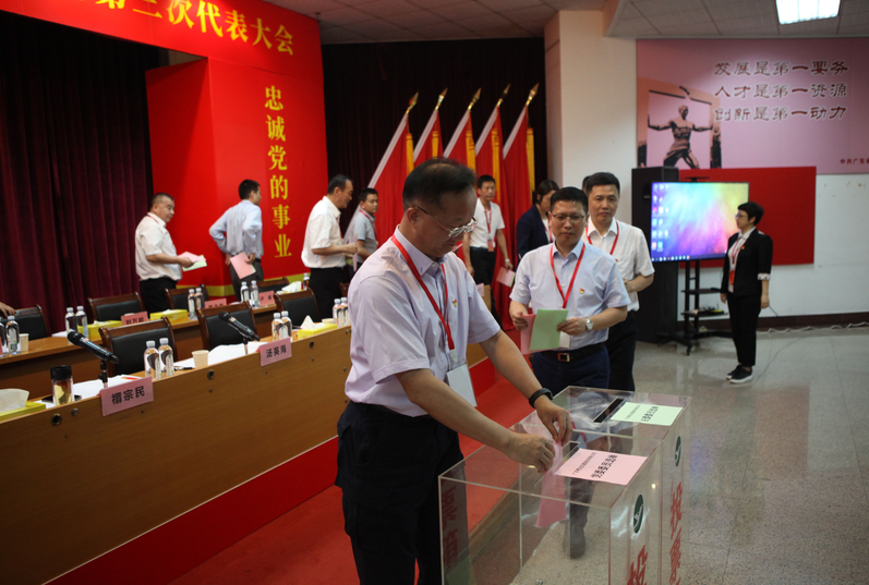 按照《选举办法》,大会采用无记名差额选举的办法,选举产生了由禤宗民、汤英海、饶锋生、曹植英、姚汉雄、杜卓才、郑思远、文忤、刘万能、张东升等10人组成的公司新一届党委会,由曹植英、张丽年、李福升、韩丽洁、储虹等5人组成的公司新一届纪律检查委员会。随后分别召开了党委、纪委委员会全体会议,选举了禤宗民为党委书记,汤英海、饶锋生为党委副书记;曹植英为纪委书记,张丽年、李福升为纪委副书记。