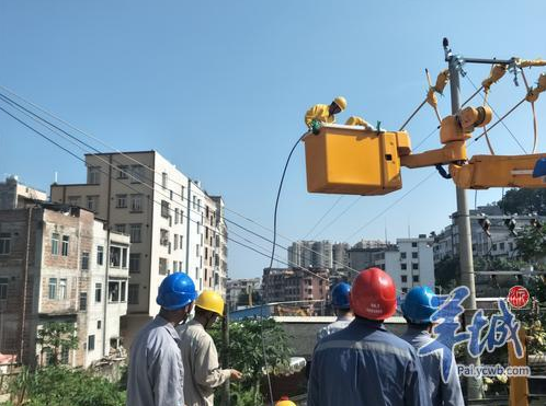 8月9日,在茂名信宜市城区电动公交车站的配电房外,两个穿着特种作业服的电力人员头顶烈日开展高压带电作业,为茂名县区级第一个电动公交车站的2000千伏安专用变压器接通电源,40个60千瓦充电桩通电调试。