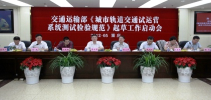 2012年5月,交通运输部《城市轨道交通试运营系统测试检验规范》起草工作启动会在重庆召开。辽宁、广东、北京、上海、天津等地交通运输厅(局)领导,重庆市交委、市运管局、市城市交通开发投资(集团)有限公司、市轨道交通(集团)有限公司领导、相关部门负责人及有关专家等参加了会议。交通运输部道路运输司综合处徐文强处长、出租汽车管理处刘美银处长莅临会议指导。会议由重庆市道路运输管理局副局长孙跃主持。