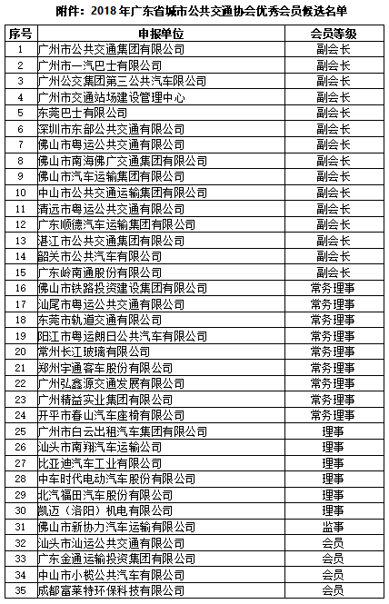 附件:2018年广东省城市公共交通协会优秀会员候选名单。