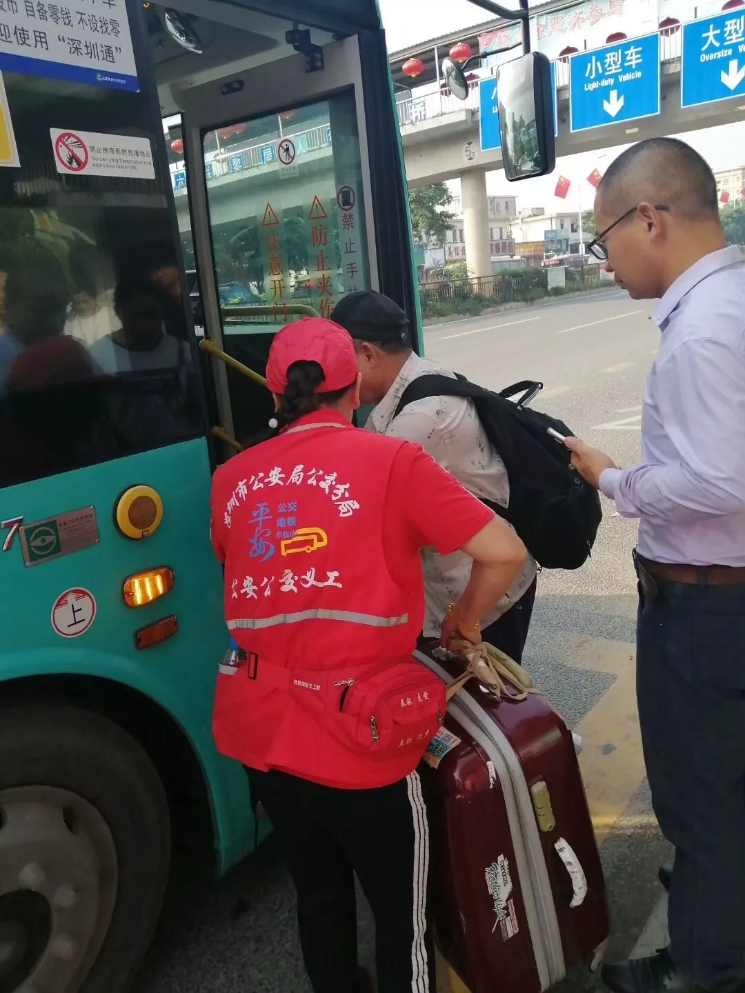 坪山站车队义工穿上红马褂来到坪山高铁站开展义务督导活动。义工们一到场站就分头行动,或指挥交通,或疏导乘客,或答疑解难……一会功夫,喧喧嚷嚷、车来车往的公交场站,一下子就井然有序了。华龙、三联车队党员志愿者们,分别来到“大坡头村”公交站台、三联广场主要路段开展党员志愿服务活动。第一组在公交站台劝导市民乘客文明排队上车,主动搀扶老、幼、病、残、孕、抱婴者等特殊乘客。第二组站在斑马线两边,对冲红灯横过马路的行人进行劝导,规范共享单车摆放,为自驾游问路的外地游客指引路线,让外地游客感受到深圳的城市温暖。