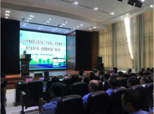 2019年10月22日,惠州市交通运输局举办2019年惠城区公交行业“不忘初心,牢记使命,践行安全行车,优质服务宗旨”公交驾驶员首场培训会,培训会旨在增强公交驾驶员的安全驾驶意识,提升公交服务质量。培训会共计9场次,覆盖惠城区8家公交企业1850名公交驾驶员,每次轮训210人,教育面达100%。
