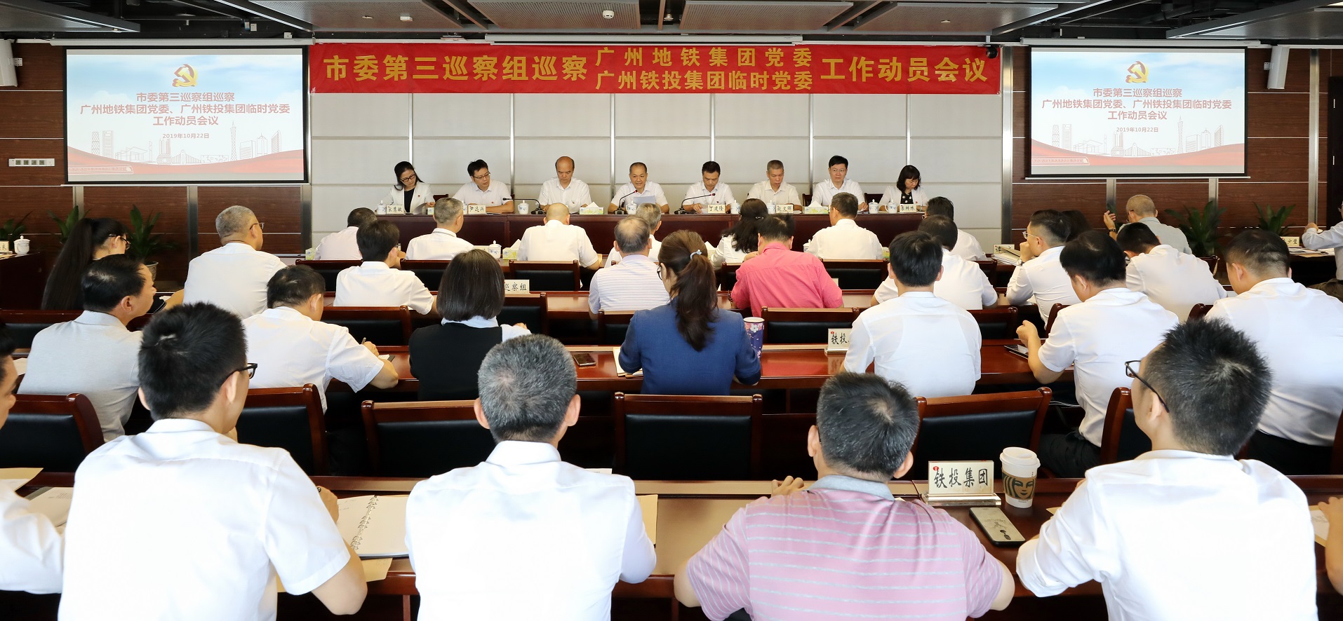 根据广州市委统一部署和巡察工作安排,2019年10月22日上午,广州市委第三巡察组召开巡察广州地铁集团党委工作动员会。市委第三巡察组组长何华权同志作动员讲话,对巡察工作进行部署;广州地铁集团党委书记、董事长丁建隆同志主持会议并作表态发言。