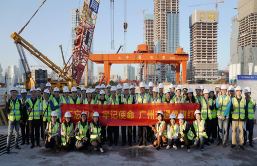 为进一步增进广州市交通运输局机关党员、干部对轨道交通建设管理的认识,促进党建与业务工作紧密结合,更好把握实施交通建设与运输管理双轮驱动,推动市交通领域综合治理体系和治理能力现代化,2019年11月28日,市交通运输局与广州地铁集团联合举办“走进广州地铁、共建美丽羊城”调研学习活动。市交通运输局副局长、机关党委书记何东海和一级调研员刘海峥带领局机关近50名党员、干部前往广州地铁十八号线琶洲西区站建设工地现场开展学习交流活动。十八号线和二十二号线全长92.1公里,设计时速达到160公里,是连接南沙区与市中心、广州各大交通枢纽的重要轨道交通项目。