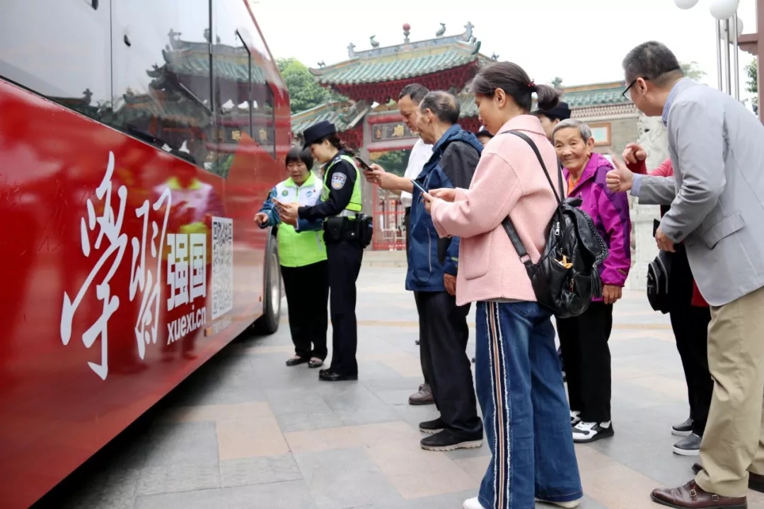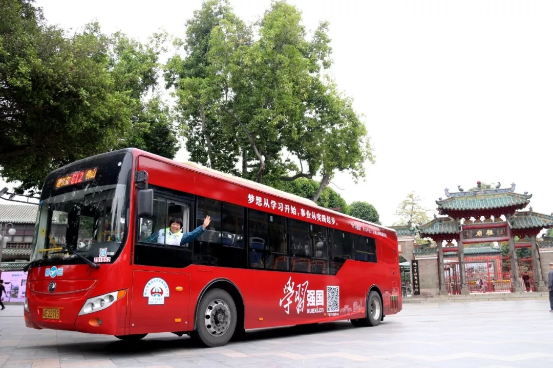 由佛山市禅城区委宣传部、禅城区文明办联合佛山粤运公交公司专设的“禅城区新时代文明实践号”和“学习强国”主题宣传公交在现场展出,车身印有“我们都在努力奔跑,我们都是追梦人”、“每个人都是新时代的见证者、开创者、建设者”字样。