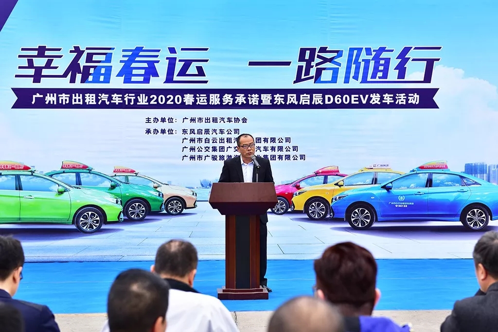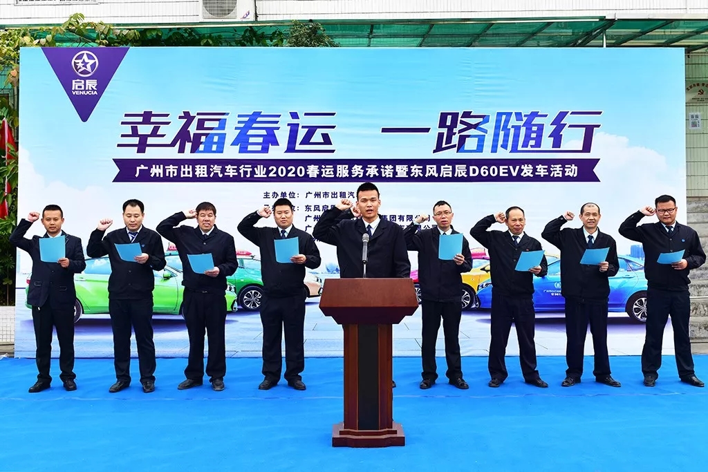 1月14日,由广州市出租汽车协会主办、广州公交集团白云(广交)公司、广骏公司承办的“幸福春运,一路随行”2020年春运服务承诺暨东风启辰D60EV出租车发车活动在白云山下举行,广州公交集团一批优秀出租车司机在白云山麓举起紧握的右拳,代表广州市近4万名出租车司机,向广大市民庄重地喊出春运服务承诺。白云(广交)、广骏、天湖、广发、新东方等68家巡游出租车企业负责人参加活动。