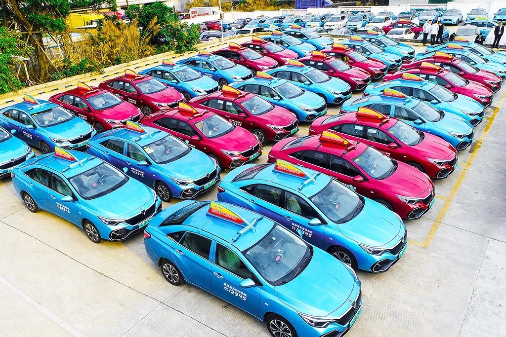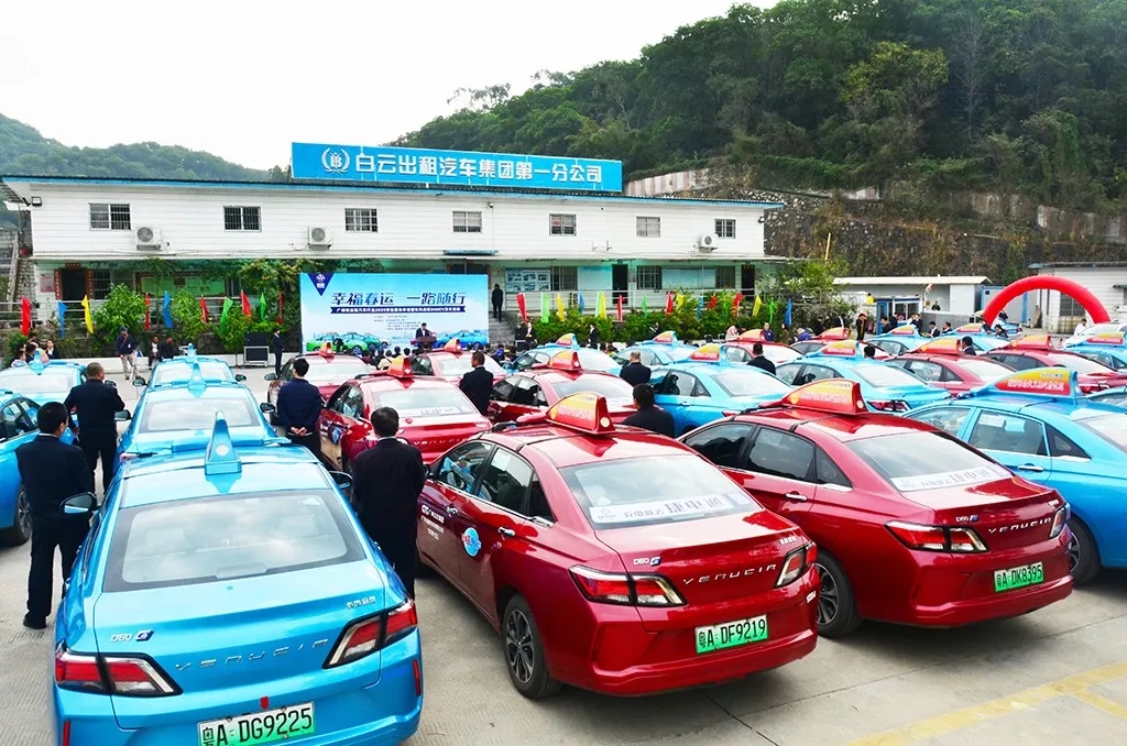 随后,一辆辆崭新的纯电出租车鱼贯开出,为广大市民及春运旅客提供优质服务。