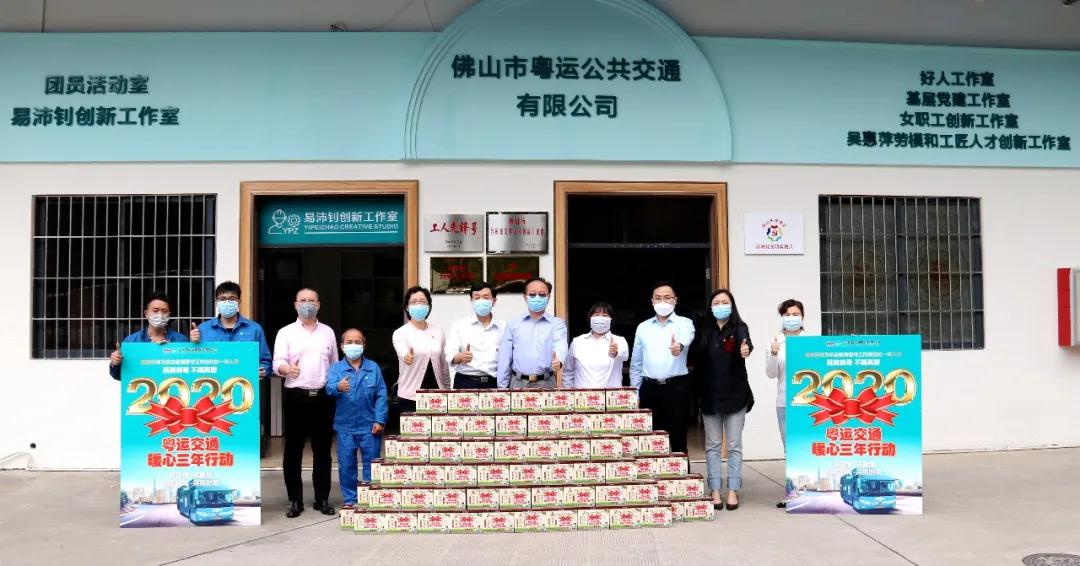 3月2日上午,粤运交通党委书记、董事长禤宗民和纪委书记、工会主席曹植英代表粤运交通党委和工会来到镇安公交综合枢纽,为佛山粤运公交一线员工送上防疫凉茶150箱,增强抵抗力,以良好的体魄打好疫情防控阻击战。