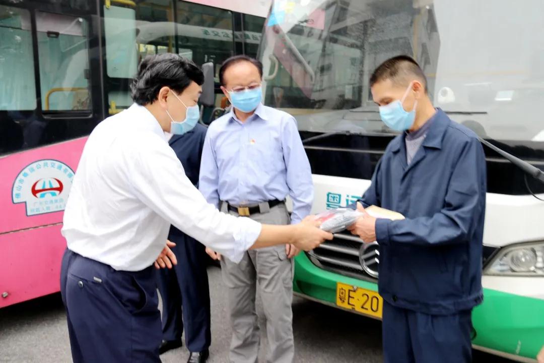 随后,禤宗民还去到医学隔离点慰问承担应急转运任务的黎木荣和谭剑辉两位党员车长,向两位车长送上慰问金。佛山公交党委副书记、佛山粤运公交党委副书记、总经理梁智泉代表佛山公交公司向两位车长送上一批N95口罩和慰问金。