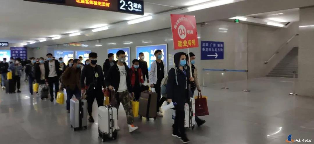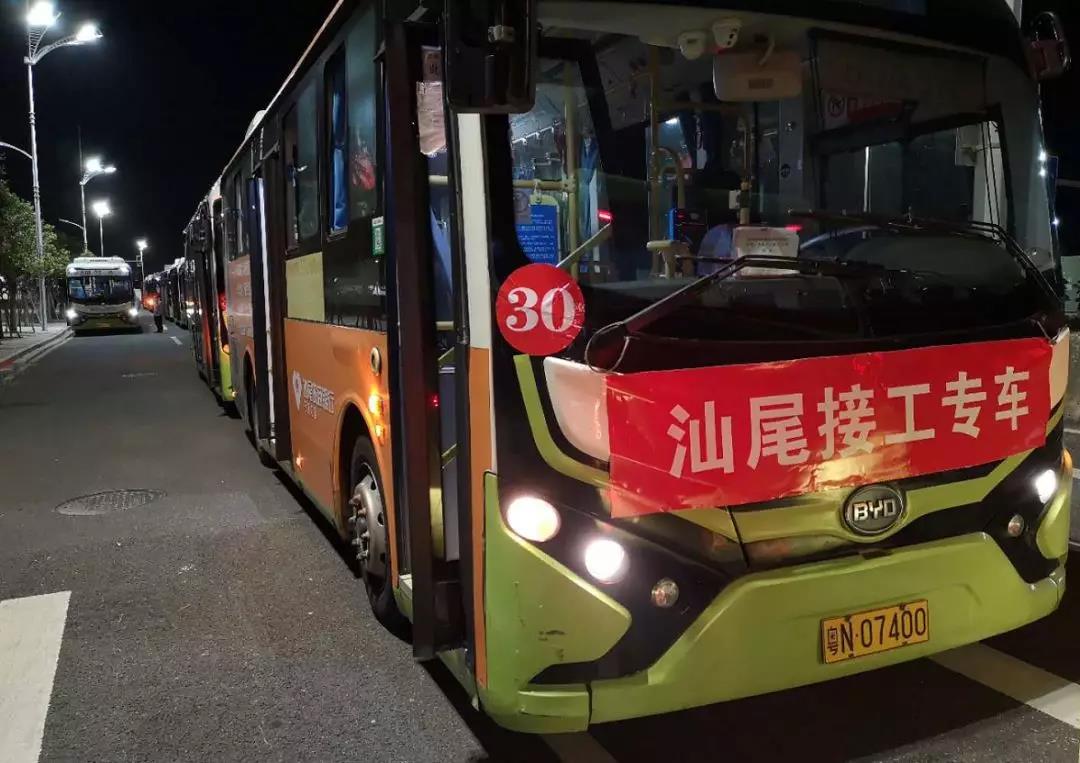 3月2日晚上,从四川省眉山东站出发,搭载800名四川籍来汕务工人员的G6341专列到达汕尾高铁站。在市人社部门、市交通局的组织协调下,汕尾粤运公司派出41辆新能源公交车,到高铁站接回800名四川籍来汕务工人员。助力企业的复工复产工作,让外地员工安全到岗、安心作业。