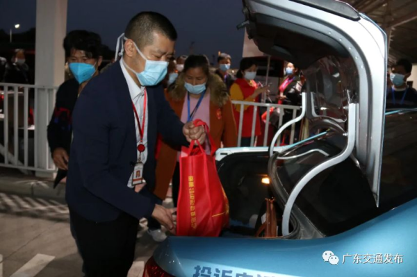 返岗人员对佛山市出租车应急服务车队这次接送服务十分满意,称赞佛山服务贴心。一位来佛山多年的株洲人,特向佛山市出租车协会送来锦旗。
