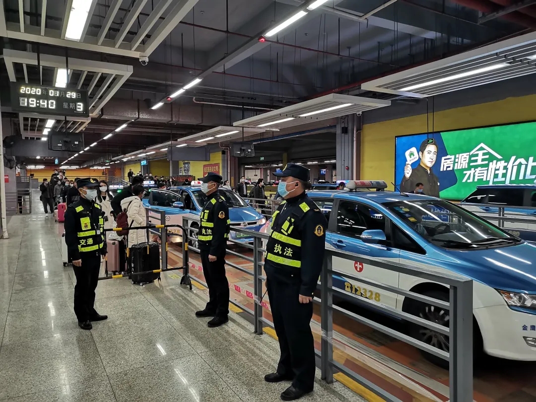 深圳北站,出租汽车有序承载到站乘客。