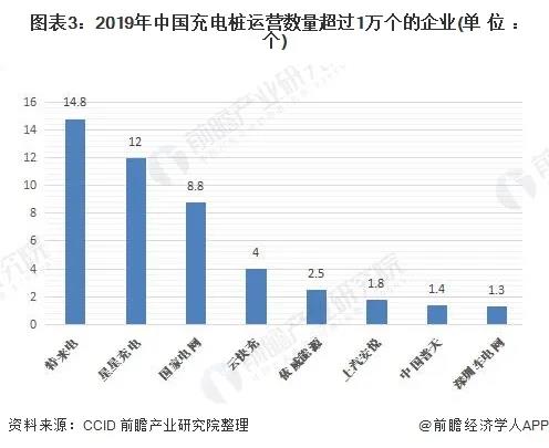 目前充电桩运营总量超过1万个的公司有:特来电、星星充电、国家电网、云快充、依威能源、上汽安悦、中国普天、深圳车电网8家,其中特来电充电桩运营量达14.8万个。