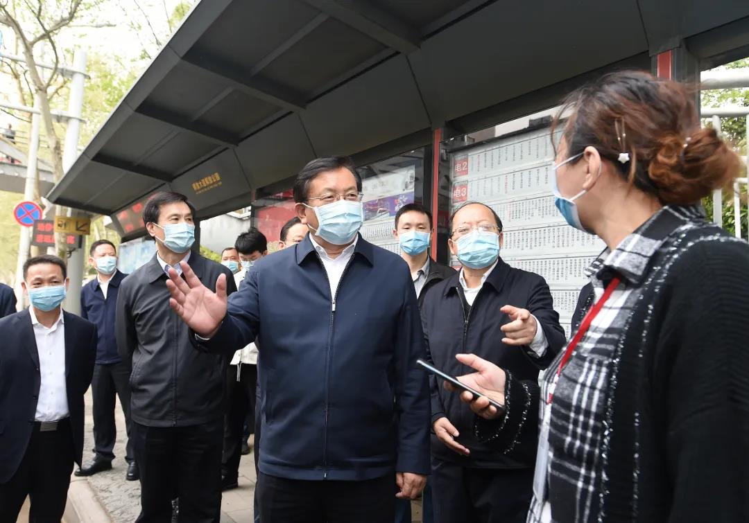 3月26日,湖北省委常委、武汉市委书记王忠林前往公交站点、商场、社区,调研公交恢复运营和商业秩序修复工作。