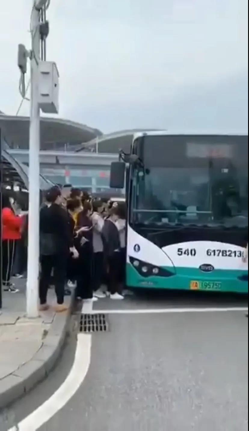 3月26日,在网络上流传一则视频:在高铁武汉站公交车站前,为了乘坐540路公交车,许多乘客挤在车门前拿出手机扫健康码,等待进入车厢。有网友对此表示担心。