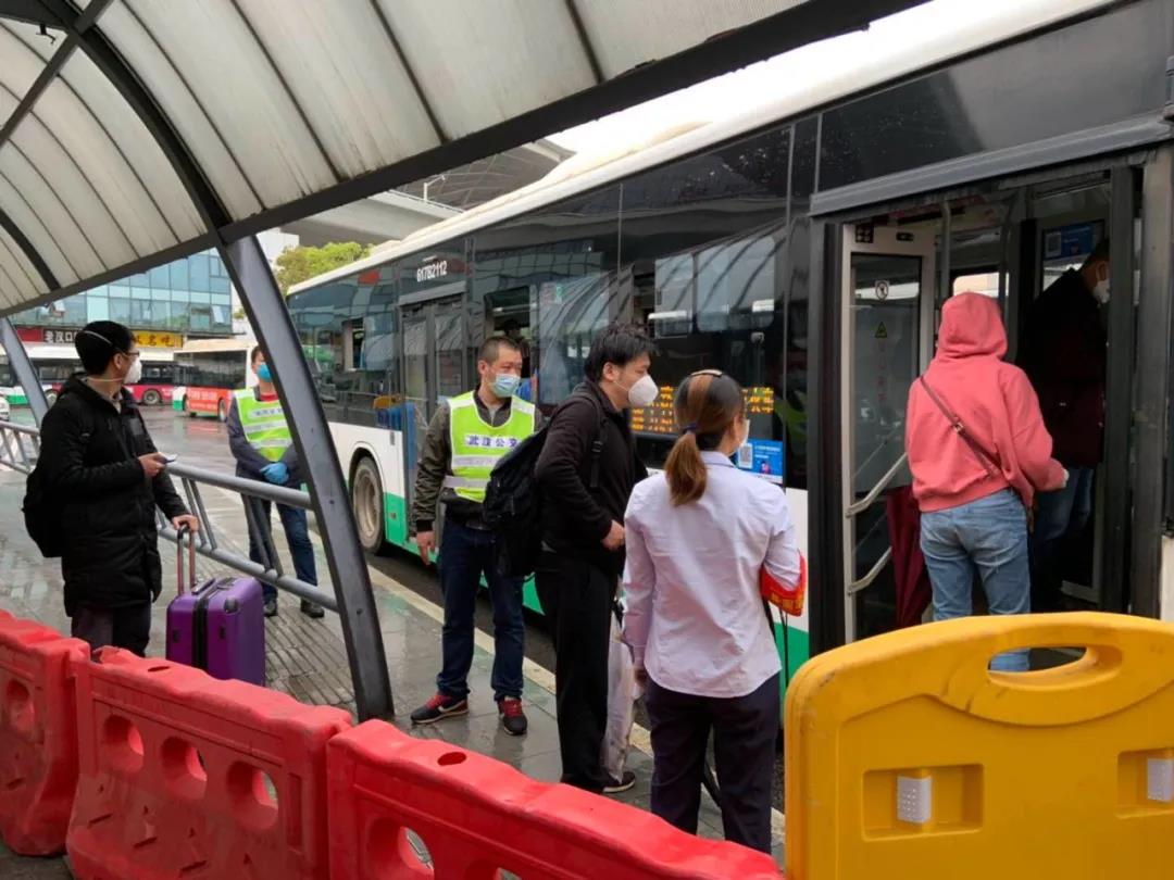 公交525路线路管理员吴泽明介绍,3月25日零时起,除武汉市17个铁路客站外,湖北境内铁路客站恢复办理到达和出发业务,因此来乘车的乘客以青山本地居民居多。市民乘车前,须扫描车身(车站)二维码获取健康状态和车辆(车站)信息,向工作人员出示后,方可乘车。每辆车都配备了一名随车安全员,负责检测乘客体温、查看乘客上下车扫健康码,每趟对车辆进行消毒,督促大家戴好口罩。但不排除有乘客过于聚集的现象。