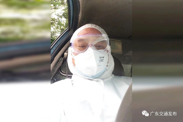 黄创基是参与此次运输任务的司机之一。采访时,他和同事都戴着口罩和防护镜,还穿着防护服。黄师傅说,由于车上不能开空调,只能开窗,穿着防护服开车,没一会就全身是汗。