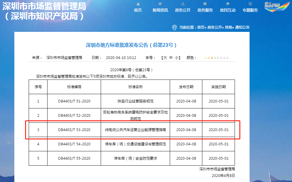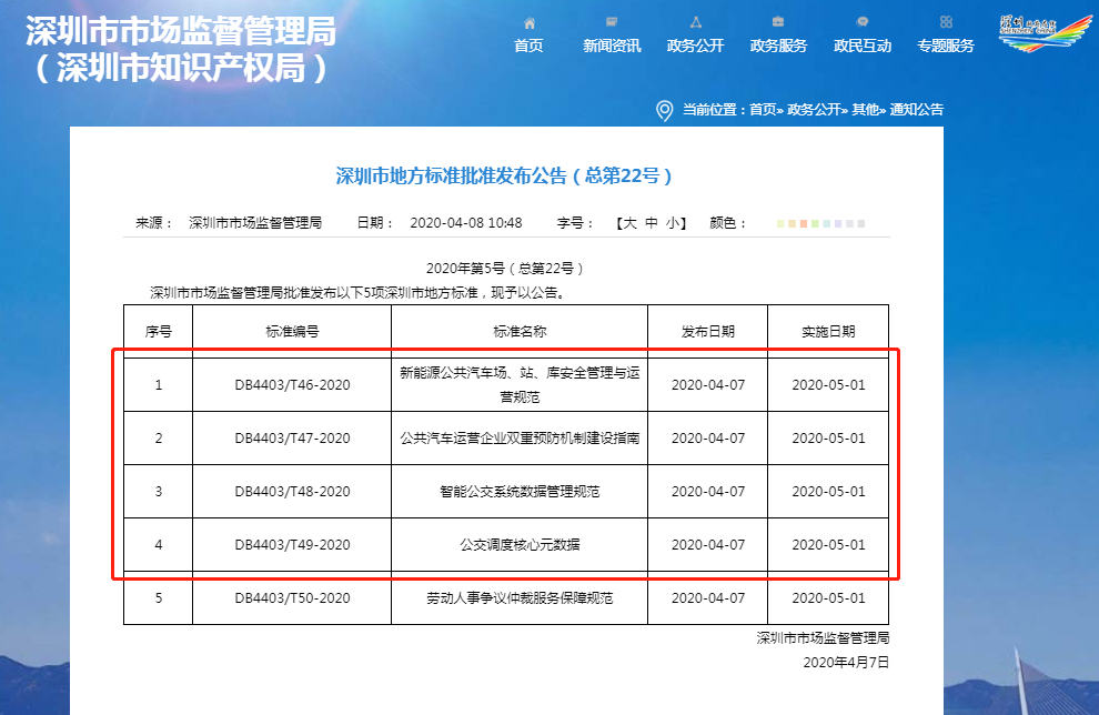 强势升级!近日,由深圳巴士集团主导制定的五项标准,经深圳市市场质量监督管理局批准通过,发布升级成为深圳市地方标准,并于2020年5月1日起正式实施!