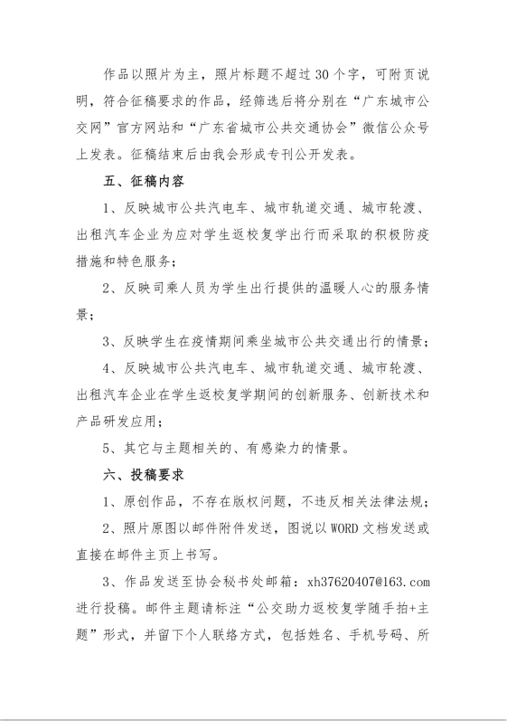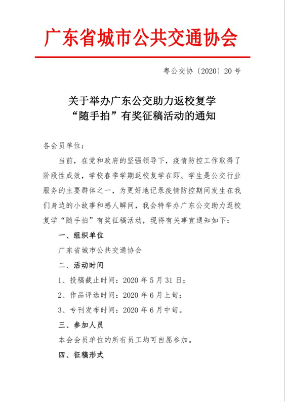 关于举办广东公交助力返校复学“随手拍”有奖征稿活动的通知