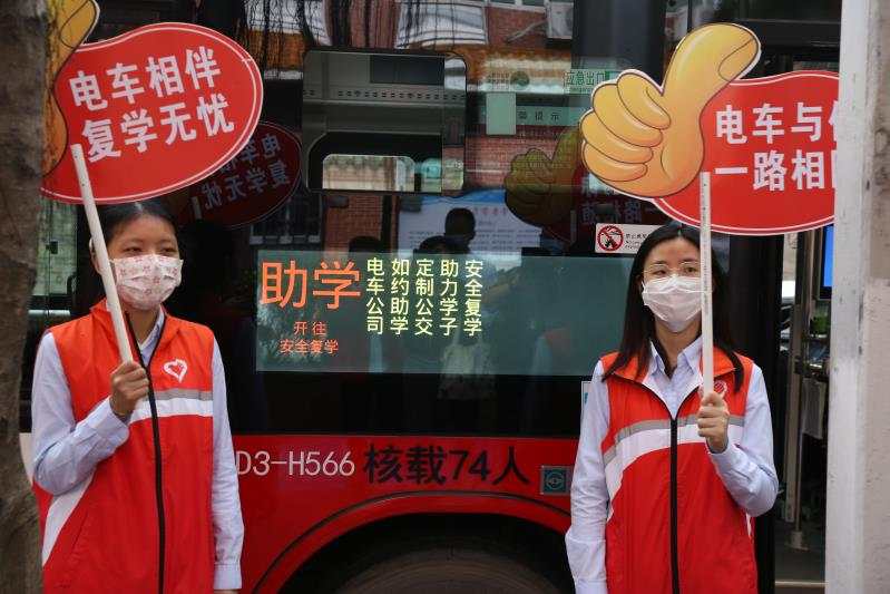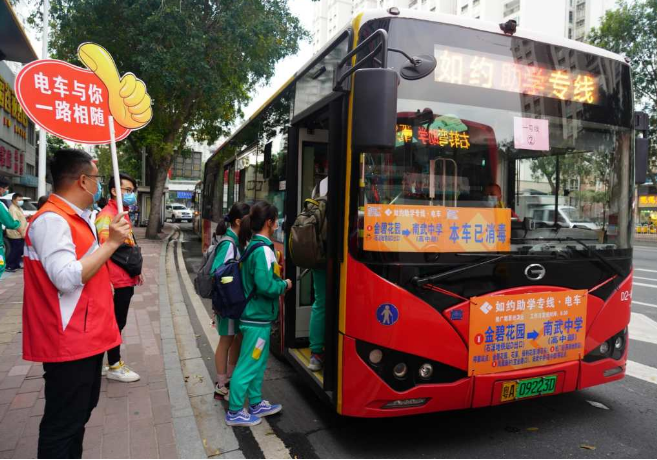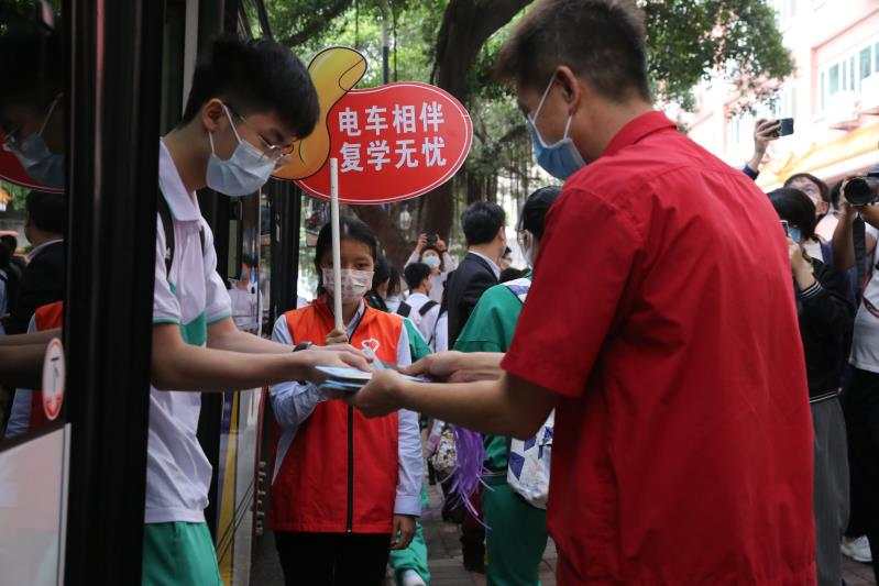 为确保疫情期间“开学日”顺利进行,广州公交集团电车有限公司和广州市南武中学、广东广雅中学等多家学校联合广州医科大学附属第一医院南山志愿服务队、广州青年志愿者协会文明交通志愿服务总队等青年志愿服务组织,携手合作开通学生专用如约助学专线,为莘莘学子复学提供更安全、更便利、更舒适的优质公交服务。