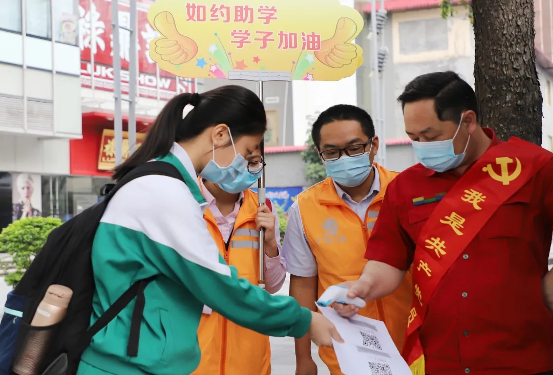 在各站点,党员们按照分工要求,热情饱满,他们或指挥车辆停放和驶出,或乘车指引,或耐心解答家长的疑问,细心提醒学生正确佩戴好口罩。他们热情主动、认真负责的身影格外引人瞩目,身上那件小马甲更是成为了广大莘莘学子复学路上一道靓丽的风景线。
