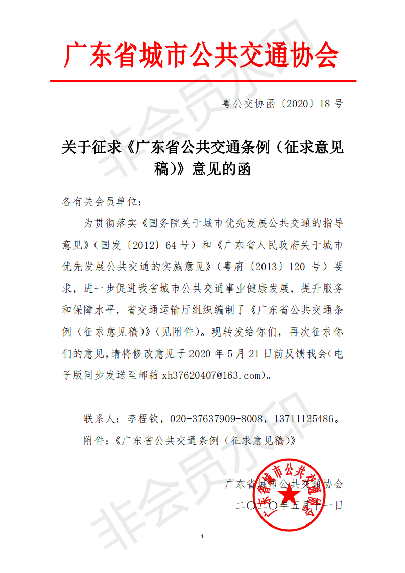 《广东省公共交通条例》公开征求意见