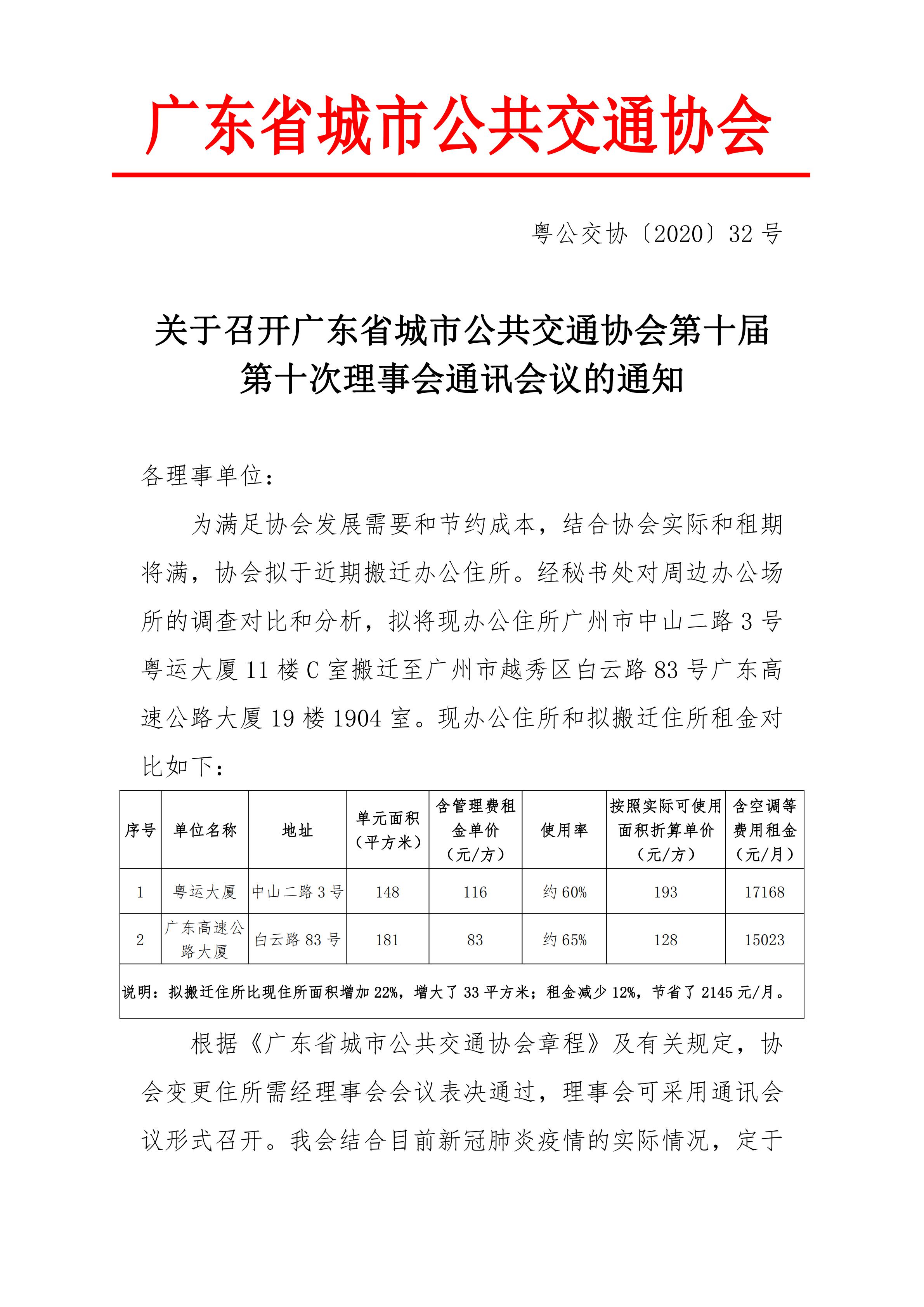 关于召开广东省城市公共交通协会第十届第十次理事会通讯会议的通知