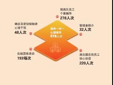 疫情爆发高峰期间,巴士集团有两名员工在进行每日“情绪打卡”时,登记有发热症状。EAP中心立即启动危机干预一级应对策略,从出现症状到其确诊、家属确诊以及治疗、康复、隔离期满的大约一个半月当中,落实慰问金、确诊补助、安全评估、心理辅导,在用心陪伴、贴心安排之下,确诊员工积极配合治疗、乐观应对变故,最终战胜了病毒。疫情期间,集团EAP中心采用管理者转介、咨询预约、绩效倒推三种途径确定重点关注人员487名,及时给予了心理疏导。