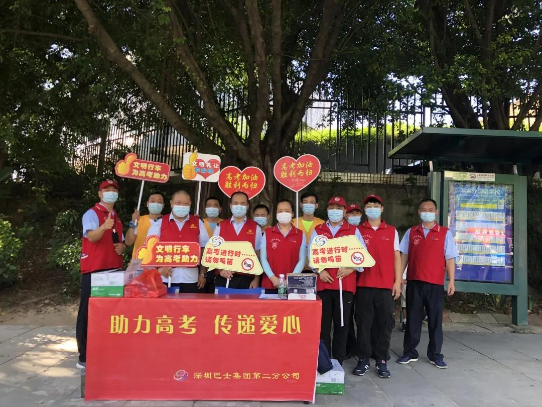 巴士集团组建爱心助考队,组织党员、义工、巴士之友在考点站台搭建爱心驿站,配备矿泉水、签字笔等爱心物资,为莘莘学子送去关爱。