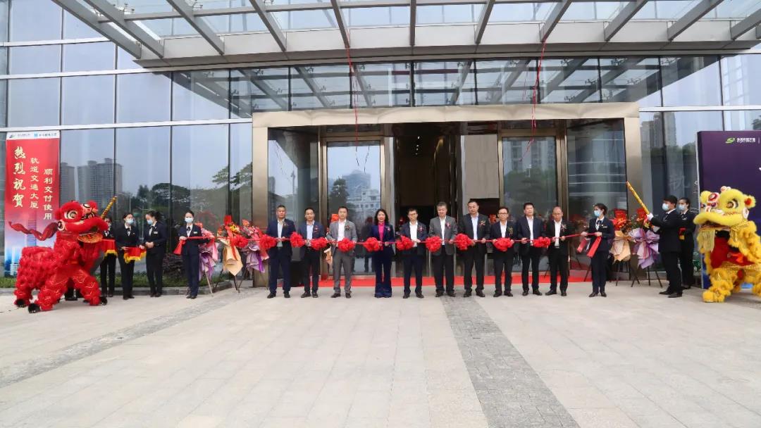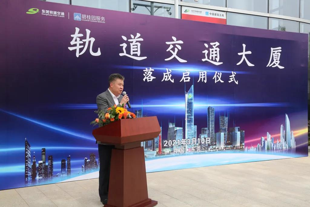 3月10日上午,市轨道公司举行东莞轨道交通大厦落成启用仪式。东莞市政府副秘书长李志军,市轨道交通局局长李天海,市国资委四级调研员简伟杰,市交投集团党委书记、董事长、市轨道公司党委书记罗沛强,市交投集团党委副书记、总经理朱铭,市轨道公司董事长黄晓雯,市轨道公司党委副书记、总经理陈文胜等领导,市资产经营公司、中建五局、碧桂园生活服务集团、进驻企业客户代表及轨道公司员工代表共40余人参加。