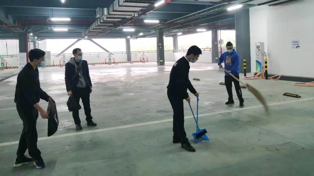 当日下午,广骏公司参与了燕岭公交立体充电桩停车场卫生清洁志愿服务。活动分为两个环节,第一项为志愿者参观燕岭公交立体充电桩停车场,了解能源充电业务情况;第二项为志愿者对燕岭充电立体库外围、首层以及二层进行卫生清洁。