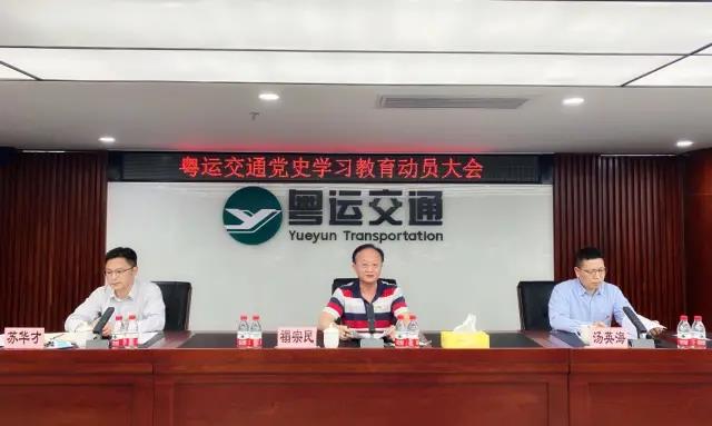 粤运交通党委书记、董事长禤宗民作动员讲话,党委副书记、总经理汤英海传达中央、省委、省国资委党委、省交通集团党委党史学习教育动员大会精神,党委副书记苏华才对党史学习教育实施方案作宣贯并主持会议,粤运交通党委其他班子成员出席会议。