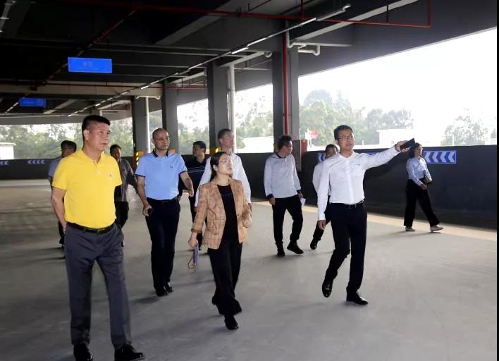 沈副局长一行首先前往珍宝巴士新能源公交综合停车楼实地考察项目整体规划布局、建设完成现况及充电桩建设运营等情况。
