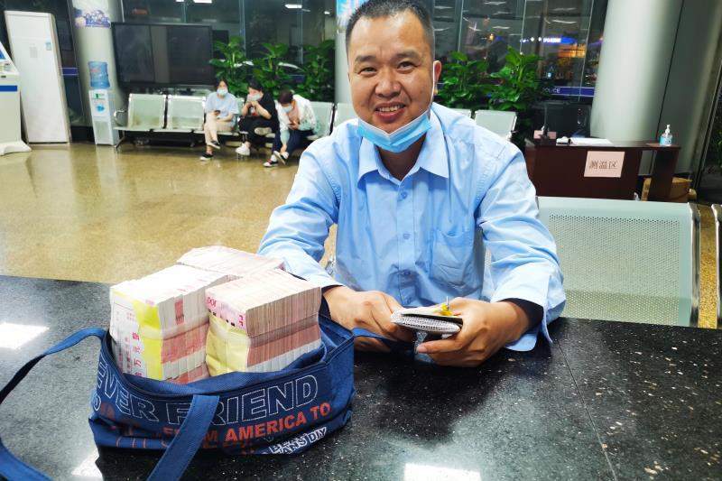 “的哥”曾文武顿时紧张起来,马上把布袋小心翼翼地放到了副驾驶位上,立即拿起手机拨打了公司车队的电话:“紧急大事件呀!有乘客在我车上漏了一大袋现金,这估计得有三十万元!”经过与车队的沟通和确认后,曾文武选择最为谨慎地处理办法,马上将这“巨款”送到附近的派出所。