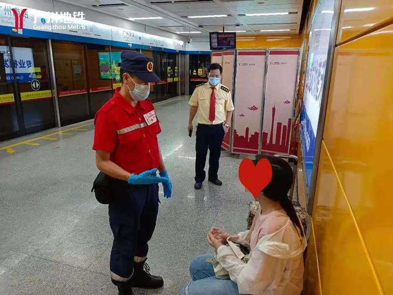 当天18:46,一名年约20岁的女乘客在广州地铁二号线广州南站下行站台头端叫住了站务员张晓琳,表示自己在搭乘列车时突然晕倒,列车上的其他乘客扶起了她,并给她让了座,一路照看她直到目的地和终点站广州南站,并将她送下车,现在依旧头晕、手脚发软、身体不适,请求车站人员帮忙。张晓琳赶忙扶助她,随即将情况报给车控室。正在站台协助清客的值班站长林振焕接到车控室通知后,迅速跑到下行站台头端。了解情况后,林振焕便接替张晓琳照看起了女乘客。