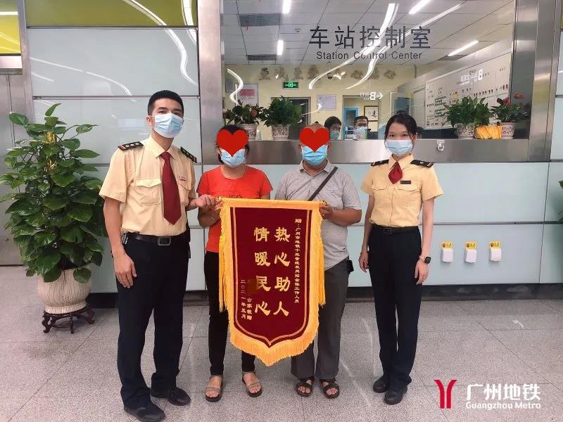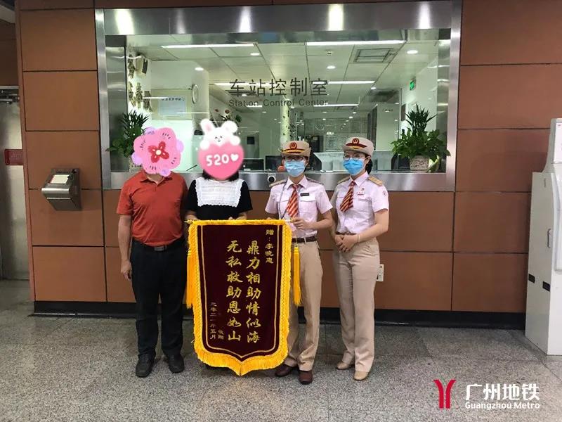广佛线魁奇路站也收到一名女乘客专程送来的写有“鼎力相助情似海,无私救助恩如山”锦旗,感谢车站工作人员的帮助,并表示:“当时,地铁员工给我递来了垫子和温水,水的温度和她们的服务真暖到她的心里了。”