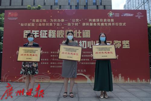 开行仪式上,广州珍宝巴士有限公司党委和广州开发区行政服务管理中心党支部、黄埔区图书馆党支部达成共建关系,共同启动“党建引领,为民办事—‘公交+’”共建项目。