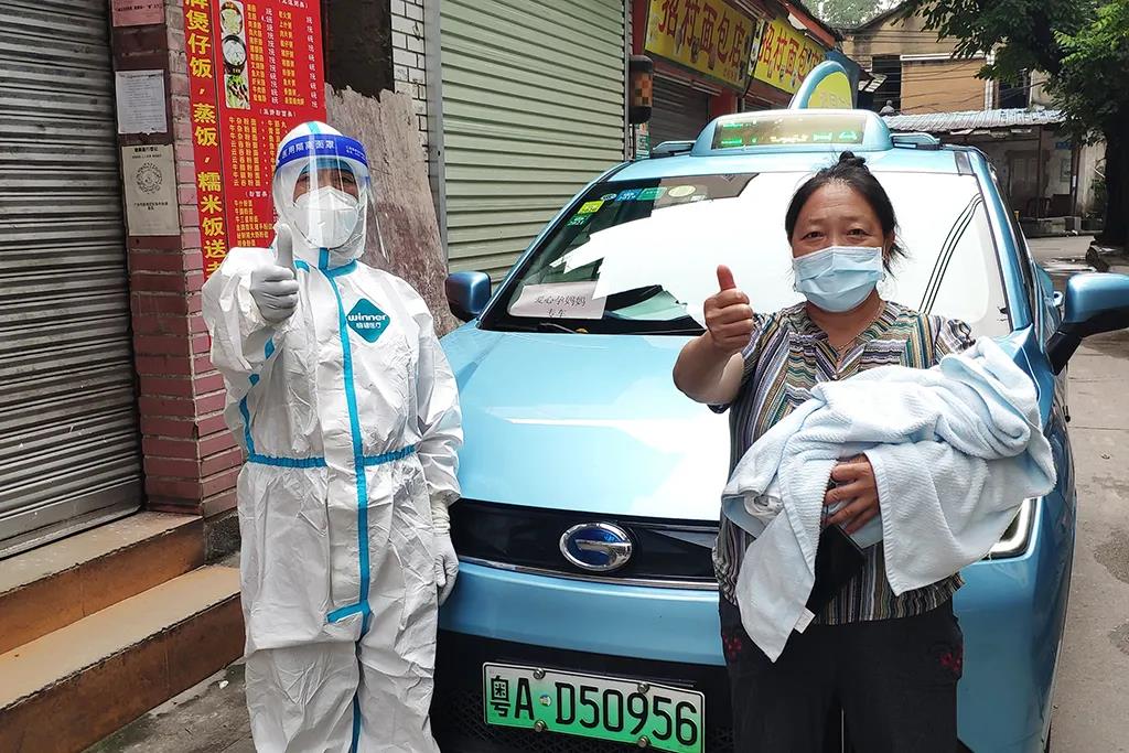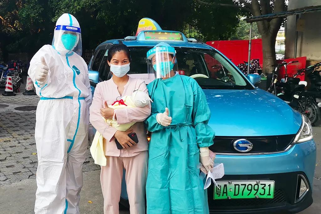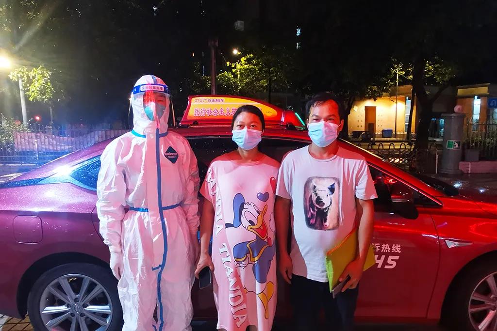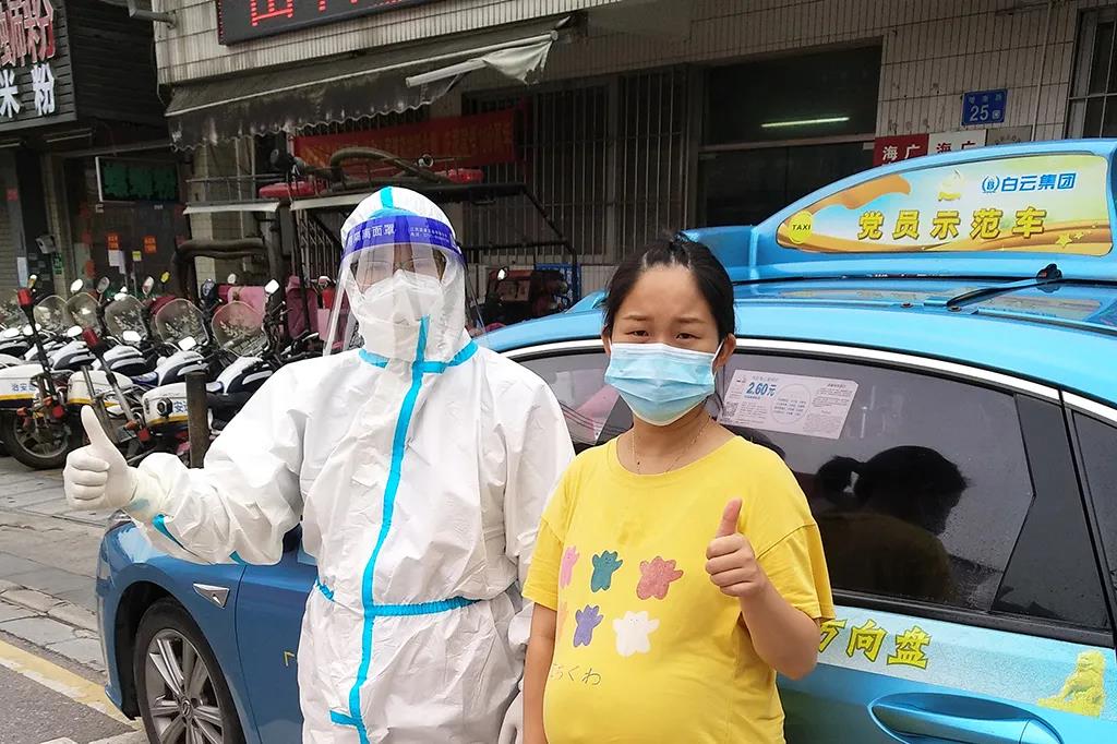 “为了我和宝宝的安全,他们都穿着防护服。在确认了我们的身份以及目的地后,就稳稳地抓好方向盘,平平安安、顺顺利利地把我和宝宝回家,真是一群爱心司机!在这个时候还驻点这里,为我们提供如此贴心的保障服务,真的是雪中送炭!我要为他们点赞!”不久前才分娩完的张女士表示。