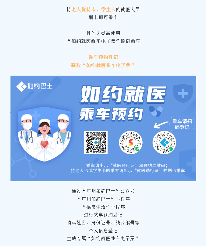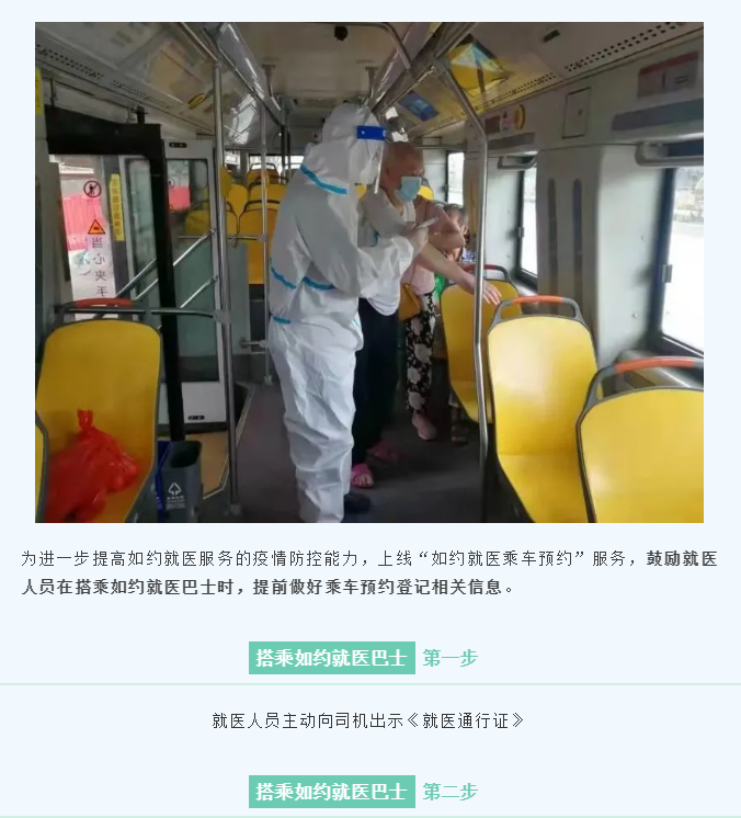 对于需要由社区卫生服务中心转诊到医院的就医人员,社区卫生服务中心将指引乘坐“如约就医”公交车,就医人员持《就医通行证》即可免费搭乘如约巴士,到区域内定点医院就诊。