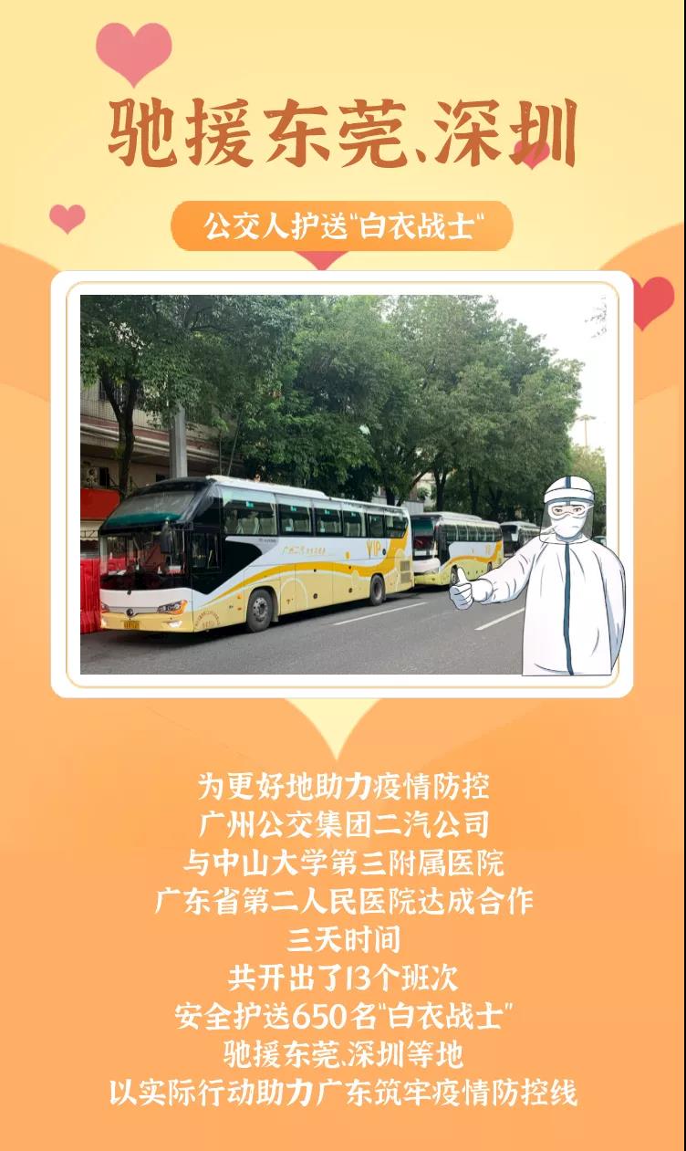 “我们最早在6月19日便护送50名医务人员前往东莞虎门等地;之后又继续发车,陆续护送600名白衣战士前往东莞虎门和深圳龙岗,均准时准点、安全高效完成任务。”