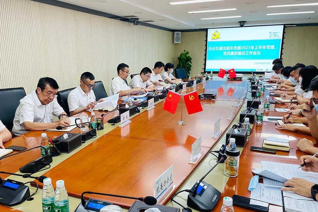 2021年6月23日下午,广州市白云交通出租车党委召开2021年上半年党建和党风廉政建设工作总结会,全面总结回顾2021年上半年党建和党风廉政建设各项工作开展情况,并对下半年主要工作进行部署。领导班子成员、各党支部及各部室负责人参加了会议。